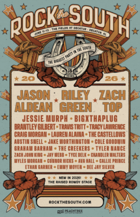 “This lineup represents everything Rock The South stands for – country roots, Southern pride, and unforgettable live music,” said Nathan Baugh, CEO of Peachtree Entertainment, and Shane Quick, Co-Founder of Rock The South and President of Live Events at Peachtree Entertainment, in a joint statement. “From icons like Jason Aldean and Travis Tritt to the next generation of stars like Riley Green, Jessie Murph, and Zach Top, this year’s festival is a true celebration of where country music has been and where it’s headed.