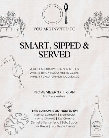 Smart, Sipped & Served — a new dinner series by TV personality, wellness guru, and CEO of Sip Channé Kavita Channé (@kavitachanne). On November 13th at 6PM, Kavita will host an unforgettable debut evening at a private residence in Fort Lauderdale, joining forces with a dynamic group of female wellness founders and CEOs to present an unforgettable debut evening centered on well-being, culinary innovation and creative expression.