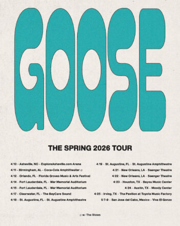 General on-sales begin Friday, Nov. 14 at 10 a.m. (ET) at SeatGeek.com. $1 from every ticket will benefit Western Sun Foundation, a volunteer-run 501(c)3 nonprofit organization that provides charitable support in the form of financial gifts to small and mid-sized nonprofits in the communities that fans of Goose travel through, including the Always Asheville Fund. For complete information, please visit www.goosetheband.com/tour.
