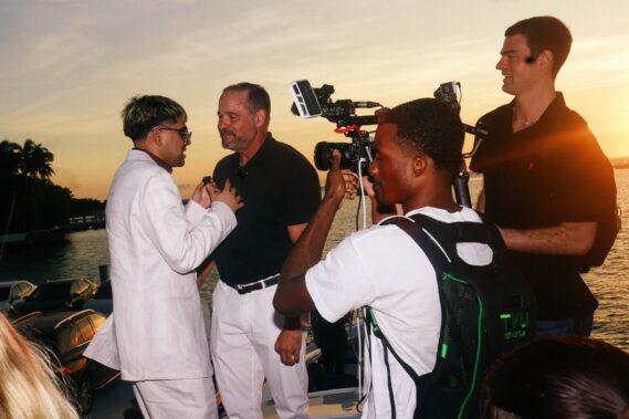 N3ON co-hosted the celebration and made a dramatic entrance by helicopter onto a floating barge just off the property to kick off the after-party. During a five-hour livestream — including standout moments of N3ON taking Devaney’s boat out on the water and the two descending the mansion’s original glass elevator — a substantial online audience tuned in, transforming the event into a real-time digital spectacle.