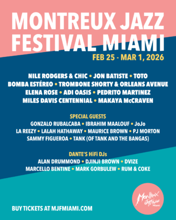 The third annual Montreux Jazz Festival Miami kicks off tomorrow, Wednesday February 25. This expanded edition of the festival will continue through Sunday, a one-of-a-kind five nights of boundary-pushing performances that bring a distinctly Miami version of the iconic Swiss festival — “the Rolls Royce of music festivals” — to South Florida. Montreux Jazz Festival Miami is a playground for creative exchange, where genres blur, legends emerge, and cultural walls disappear.
