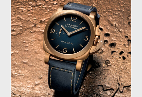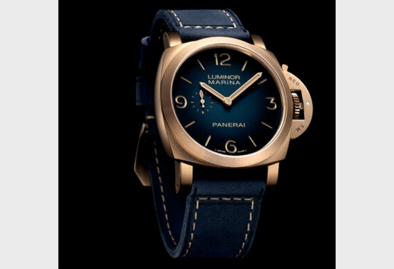Panerai has introduced the first bronze edition of its legendary Luminor Marina, marking a milestone after six decades. The PAM01678 features a 44mm brushed bronze case with a blue gradient sandwich dial, beige Super-LumiNova, and a sapphire case back revealing the new P.980 automatic caliber with a 3-day power reserve.