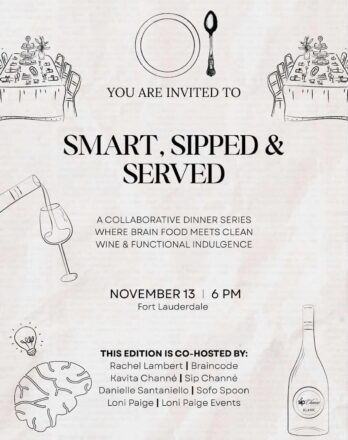 Smart, Sipped & Served — a new dinner series by TV personality, wellness guru, and CEO of Sip Channé Kavita Channé (@kavitachanne). On November 13th at 6PM, Kavita will host an unforgettable debut evening at a private residence in South Florida, joining forces with a dynamic group of female wellness founders and CEOs to present an unforgettable debut evening centered on well-being, culinary innovation and creative expression. The menu has also been set, attached above, presented byChef Danielle Santaniello, a co-host.