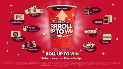 NEW YORK, February 23, 2026 – The iconic Tim Hortons U.S. Roll Up To Win® promotion launches today through March 22 with a chance to win* amazing prizes including travel getaways, electronics, gift cards, and over 1 million Tims food and beverages, gift cards, and Tim Rewards points prizes. No purchase is necessary. See Official Rules for details. (CNW Group/Tim Hortons)