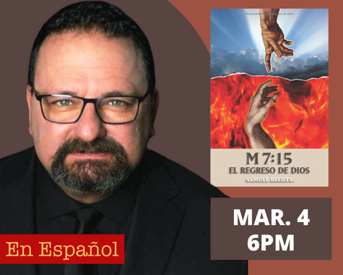 EN ESPAÑOL/ EN PERSONA: Una noche con Samuel Belilty hablando sobre M:7:15: El Regreso de Dios, con la humanidad al borde del abismo, el enfrentamiento final es inevitable en esta novela llena de misterio y acción.